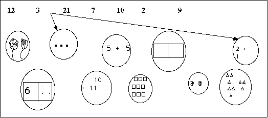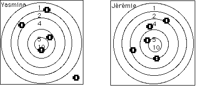 Dessiner et colorier tous les blocs différents que l'on peut avoir avec ces formes et ces couleurs. Faites des petits blocs et coloriez les dans cette case Quel est le nombre de blocs logiques contenus dans cette boite ? Réponse : Il y en a............ 10. Jérémie et Yasmina jouent aux balles auto-collantes. En regardant bien sur les cibles, comptez et écrivez dans les cases vides le nombre de points obtenus. Yasmina a obtenu un total de points de Jérémie a obtenu un total de points de